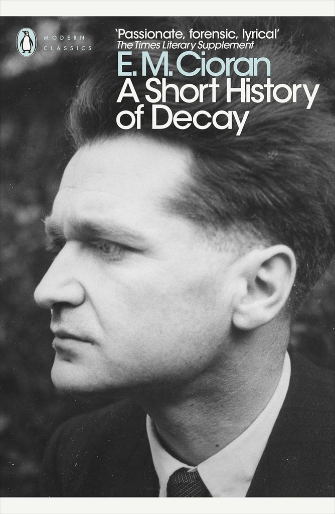 A Short History of Decay (1949) is E. M. Cioran's nihilistic and witty collection of aphoristic essays concerning the nature of civilization in mid-twentieth century Europe. Touching upon Man's need to worship, the feebleness of God, the downfall of the Ancient Greeks and the melancholy baseness of all existence, Cioran's pieces are pessimistic in the extreme, but also display a beautiful certainty that renders them delicate, vivid, and memorable.